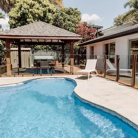 'Wrigley House' - Pool Jaccuzi Dog Friendly Villa has an equipped kitchen plus tea and coffee making facilities, a fridge, and kitchenware in it. Serving Australian specialties, Cafe Nurcha is 6 minutes' walk away. The nearest bus stop is Wises Road at Kayleigh Drive, right near the Maroochydore property. This property offers an access to a private pool, as well as opportunity to participate in cycling.